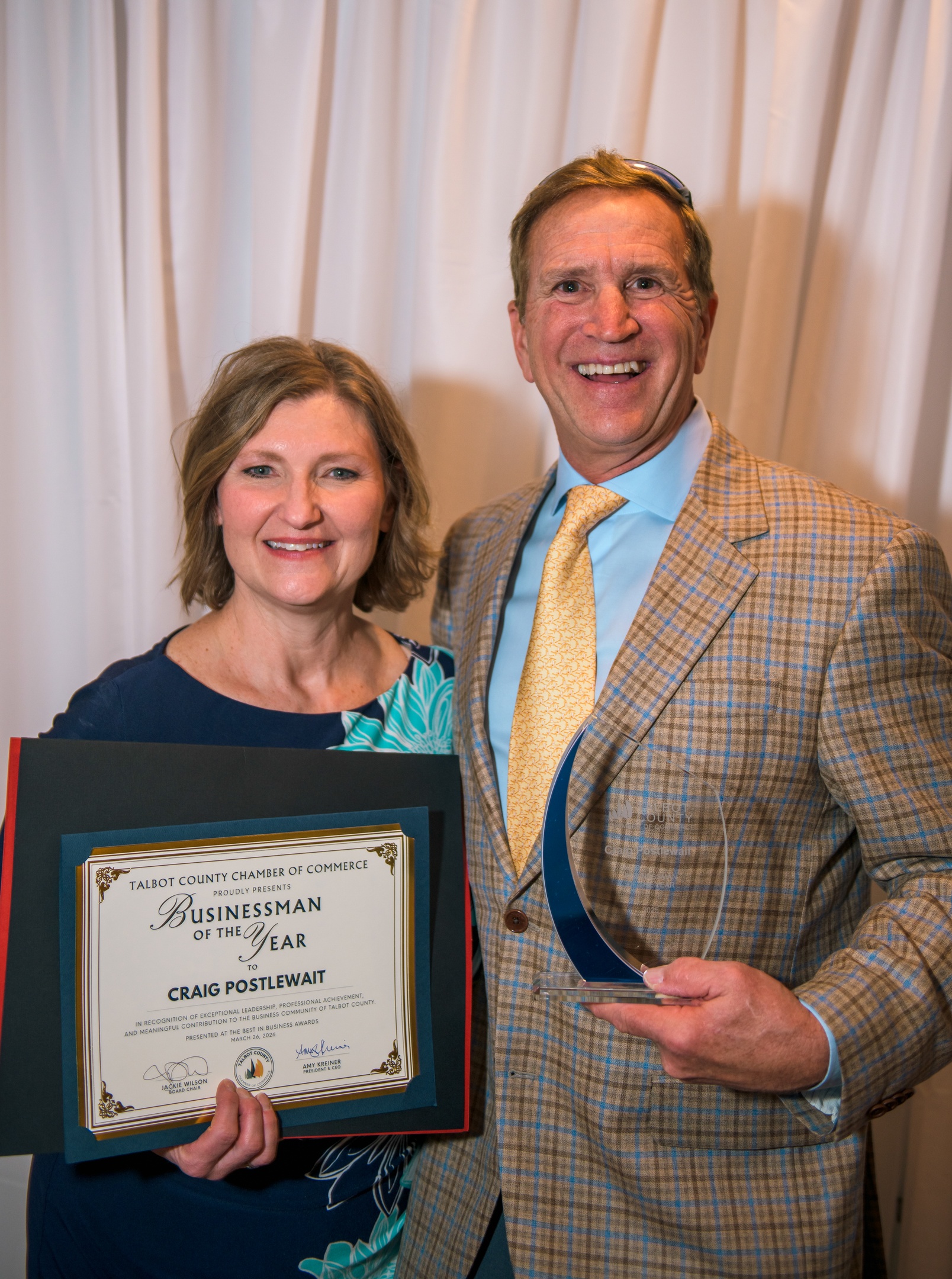 Our President, Craig Postlewait (right), was honored as the 2026 Businessman of the Year at the Talbot County Chamber Best in Business Awards. This recognition reflects his exceptional leadership, commitment to excellence, and the lasting impact he continues to make within our organization and the broader business community.